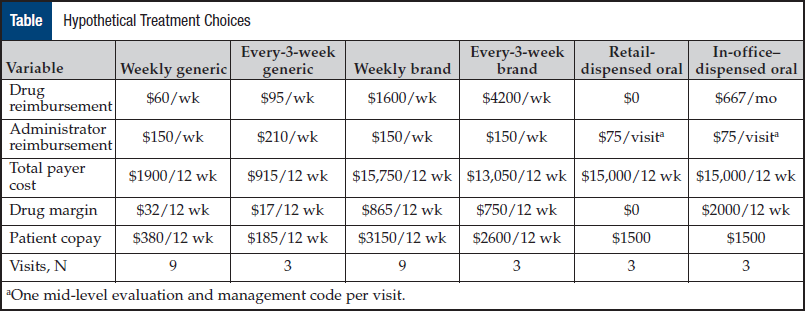 In a 2011 survey of oncologists, Xcenda researchers asked how route of drug administration influences choice of therapy. Although 38% said it did not influence their selection, 17% preferred IV products because the copay is less for the patient, and 7% preferred IV products because they were economically beneficial to their practices. Oral agents were preferred by 13% as a result of patient convenience.