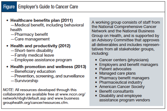The Figure outlines the approach and plan of the employer’s guide developed by the NCCN and the National Business Group on Health.