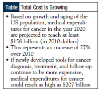 “Balancing the cost–quality equation is one of the major themes we try to tackle in the Association for Value-Based Cancer Care,” said Dr Owens. The total cost of cancer care continues to grow, posing challenges to all oncology stakeholders, including patients, providers, payers, and manufacturers (Table).