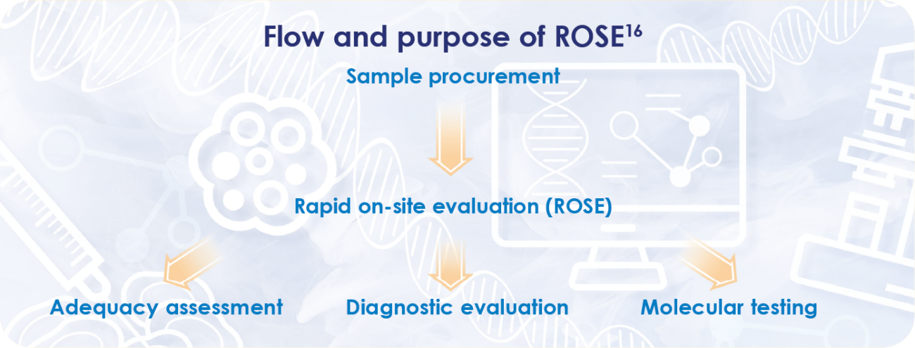 C. Rapid on-site evaluation (ROSE) is performed to increase tissue sample adequacy rate and diagnostic yield to help reduce rebiopsy rates. ROSE quickly guides appropriate sampling for molecular testing and provides a preliminary diagnosis to help direct immediate patient care16