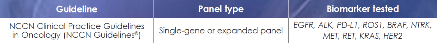 It is advisable to test for actionable and emerging biomarkers in eligible patients with advanced NSCLC at diagnosis and during the course of the disease5,6,9